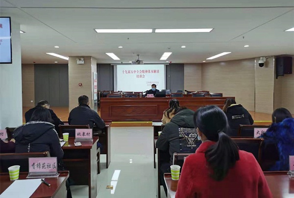 孙功围绕习近平总书记在党的十九届五中全会上的重要讲话和全会审议通过的规划《建议》,深刻阐述党的十九届五中全会召开的历史背景和重大历史意义,全面介绍“十四五”规划《建议》的起草过程和突出特点,深入讲解2035年基本实现社会主义现代化远景目标和“十四五”时期经济社会发展主要目标,系统阐释规划《建议》的核心要义、指导思想、遵循原则和主题主线。与会人员纷纷表示,要深入学习贯彻党的十九届五中全会精神,在脱贫攻坚、乡村振兴、基层社会治理等工作中打造新亮点,不断提升服务力。