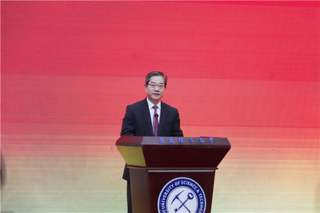 行业高校代表宋学锋致辞。中国矿业大学与安徽理工大学同为煤炭行业高校,是全国最早开展矿业人才培养的高校之一,有着深厚的历史渊源。一直以来,两校同心共济,和行业兄弟院校一道共同扛起了煤炭高等教育的大旗,合力助推国家煤炭工业的发展。两校也在携手书写煤炭高等教育壮丽诗篇的办学进程中,结下了深厚的友谊。步入新时代,安徽理工大学紧密对接国家战略和经济社会发展需求,结合传统办学优势,聚焦世界一流学科创建,积极探索高质量发展之路。希望两校进一步深化交流合作,在人才培养、科学研究、学科建设、社会服务等方面相互学习借鉴,进一步加强同行业兄弟院校的协同创新,精诚合作、携手并进,共同为服务国家能源资源战略和行业转型发展,为实现中华民族伟大复兴的中国梦作出新的更大的贡献。