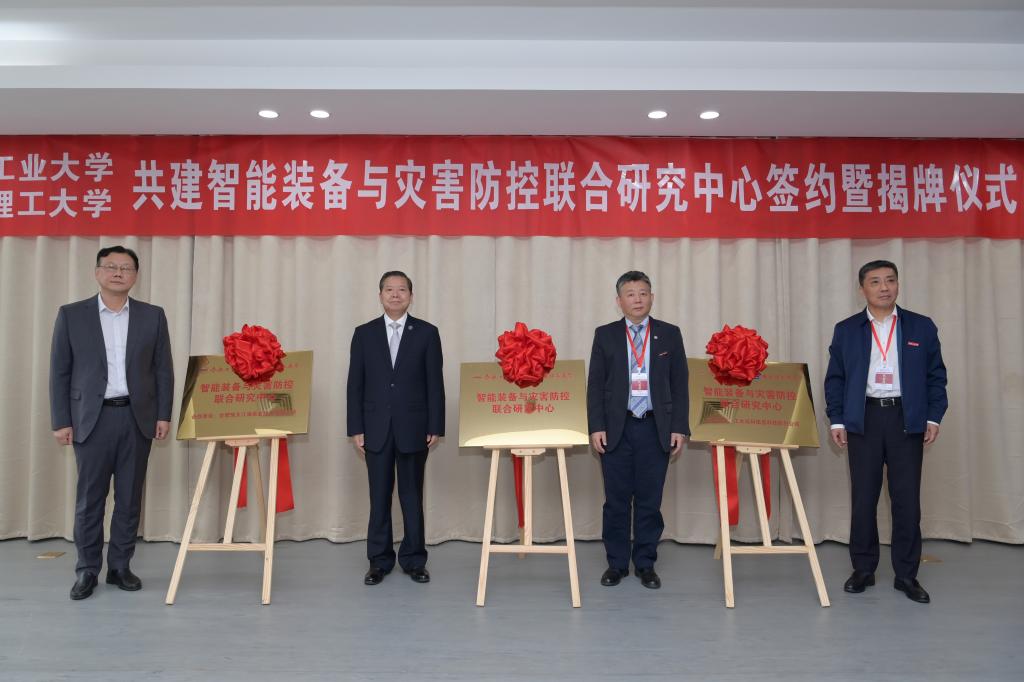 梁樑和袁亮分别代表两校签署《合肥工业大学—安徽理工大学共建智能装备与灾害防控联合研究中心合作协议》,梁樑、袁亮、魏臻和王宁共同为智能装备与灾害防控联合研究中心揭牌。
