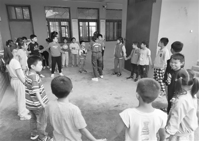 活动中,志愿者们结合学院专业特色做了精心的教学设计,他们为高年级同学准备了自然灾害主题的科普教育,向他们介绍淮河治理、当地地理水文知识,普及地震逃生和泥石流防治等安全常识;为低年级同学介绍地球的生命演化过程,讲解地球生命的演变和生命的起源,激发他们学科学、爱科学兴趣。科普教育结束后,队员们准备了丰富多彩的户外素质拓展活动与学生们一起游戏,“萝卜蹲”“背夹气球”等,志愿者与小学生们玩在一起,乐成一片。