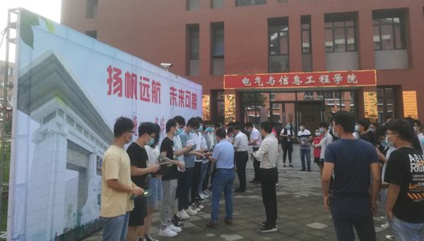 电气工程及其自动化16级4班李想同学说:“学院很贴心,为我们准备了告别仪式,发放纪念徽章,老师还亲自驾车送我们,我看到了学院领导、老师对我们满满期待、依依不舍的眼神,真是太有爱了。”