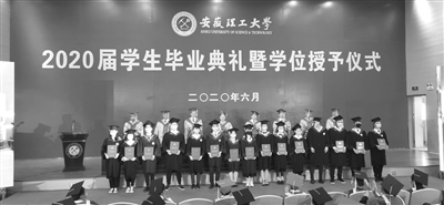 本报讯 6月19日上午,安徽理工大学举行2020届学生毕业典礼暨学位授予仪式。此次活动以“线上+线下”相结合的方式,130余名毕业生现场参加典礼和仪式,5700余名同学通过淮南移动和商务直播平台线上参加了“云典礼”。