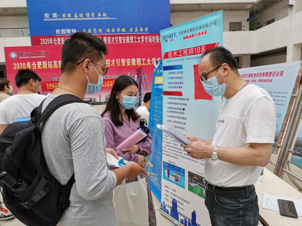 2020年6月16日,安徽理工大学联合合肥新站高新区人社局成功举办春季首场毕业生线下校园组团招聘会,中铁二十四局、安徽元琛环保科技股份有限公司等13家规模以上企业来校揽才。副校长董雨到现场指导、看望招聘企业代表和参会毕业生,与用人单位详细交流了企业发展和人才招聘情况。