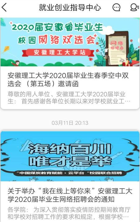 加强线上招聘,“云”就业。学校充分利用信息化手段,同第三方机构合作,推出网络招聘、微就业、云就业服务,搭建线上云平台,为毕业生提供在线就业协议审批、自行打印等服务,帮助毕业生和企业足不出户完成视频面试、线上签约。通过安徽省大学生就业服务平台、学校就业官微、今日校园APP、微信公众号及QQ群平台为毕业生精准推送就业信息,与南京、镇江、合肥等地方人才部门联合主办网络招聘会。组织开展了9场安徽理工大学2020届毕业生大型春季网络招聘活动,累计提供岗位20余万个。