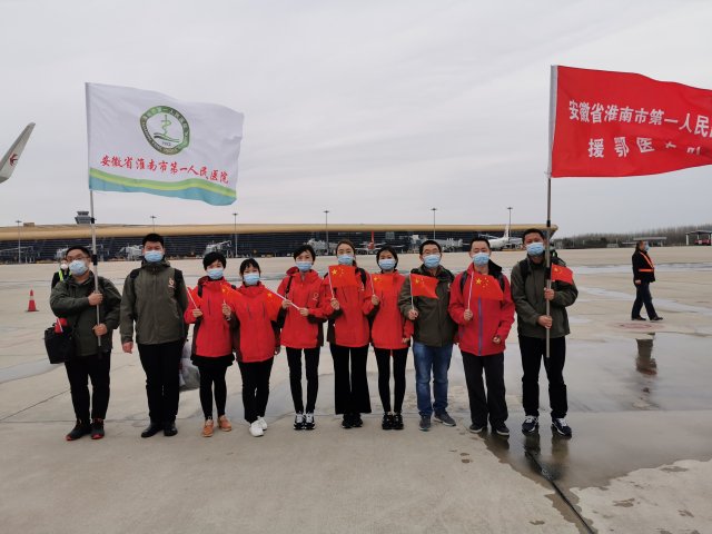 2020年2月9日,在承担全淮南市唯一定点医院救治确诊患者重任的同时,学校第一附属医院紧急组建首批10人驰援湖北医疗队,向着疫区一线“逆行”。