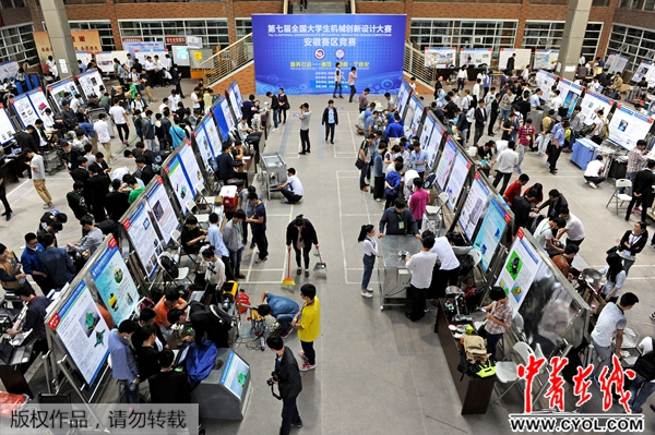 5月7日,第七届全国大学生机械创新设计大赛安徽赛区竞赛在安徽理工大学开赛,来自安徽各地32所高校大学生156件作品参加决赛。摄影 陈彬