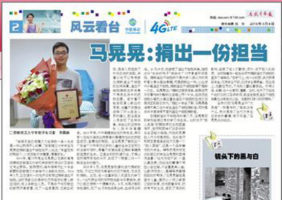 当我们把马晃晃当作“大英雄”一样看待时,“其实没有什么,我只是做了当代大学生应该做的事情,微不足道。”马晃晃淡淡地说。(作者:安徽理工大学本报学生记者 李昌殿)