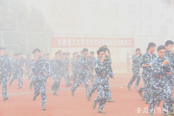9月25日下午,安徽理工大学在北校区举行2015级新生突发灾害事故应急疏散演习。校纪委书记、应急疏散演习总指挥周峰在现场指挥观摩了应急演习,并作总结讲话。