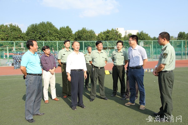 9月22日下午,安徽理工大学副校长叶醒狮、校纪委书记周峰在学生处处长田中良、武装部部长李明、南京军区驻学校选培办金绍启中校、校党政办公室副主任李梁、党委宣传部副部长虞尚元和有关学院负责人等的陪同下,分别在三校区看望并亲切慰问了军训现场值班负责人、医务人员、辅导员、承训教官和2014级军训学生。