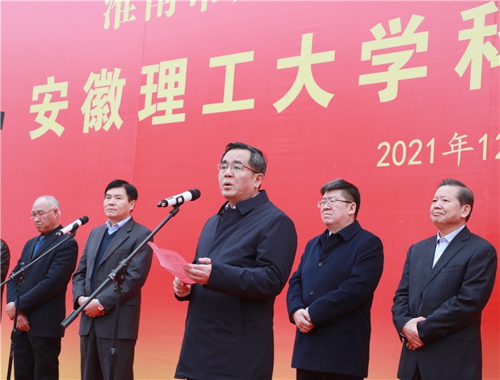 袁亮讲话。他对淮南市委市政府长期以来关心、支持和指导学校建设发展表示衷心感谢!向大学科技园开园表示热烈的祝贺!他指出,当前市校都面临着进入新发展阶段、贯彻新发展理念、构建新发展格局的重大任务,大学科技园正式开园是推进“三地一区”建设、实施创新驱动发展战略的重要举措。希望大学科技园坚定信心信念,带着省第十一次党代会期间王清宪省长对市校共建大学科技园给予鼓励和期望,通过体制机制创新把大学科技园打造成“安徽典范”。他强调,推动学校教学科研与地方产业深度对接、市校融合高质量发展是认真贯彻党的十九届六中全会精神、落实省委省政府对学校高质量发展要求的务实行动。学校要用好大学科技园这个创新载体,紧跟淮南改革发展脉动,大力助推淮南“双招双引”,广泛组织发动合作单位、校友企业以及大学生创新创业公司入驻园区,推动科技成果、科技企业在园区转化孵化,为淮南市产业转型发展作出应有的新贡献。