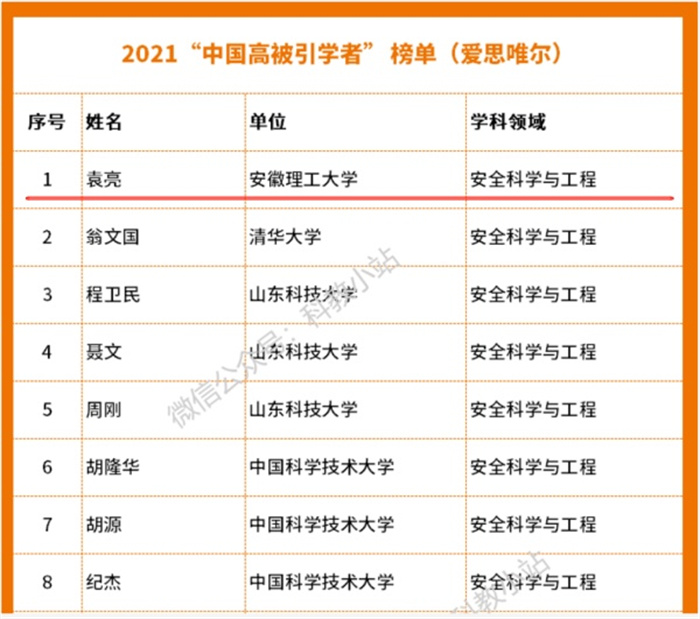4月14日,爱思唯尔(Elsevier)重磅发布2021“中国高被引学者”(Highly Cited Chinese Researchers)榜单,中国工程院院士、安徽理工大学党委副书记、校长袁亮作为安全科学与工程学科的高被引学者入选该榜单。