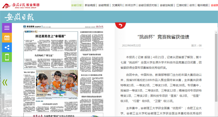 本报讯(记者 殷骁)4月21日,记者从团省委了解到,第十七届“挑战杯”全国大学生课外学术科技作品竞赛近日闭幕,团省委获得全国专项赛省级优秀组织奖。