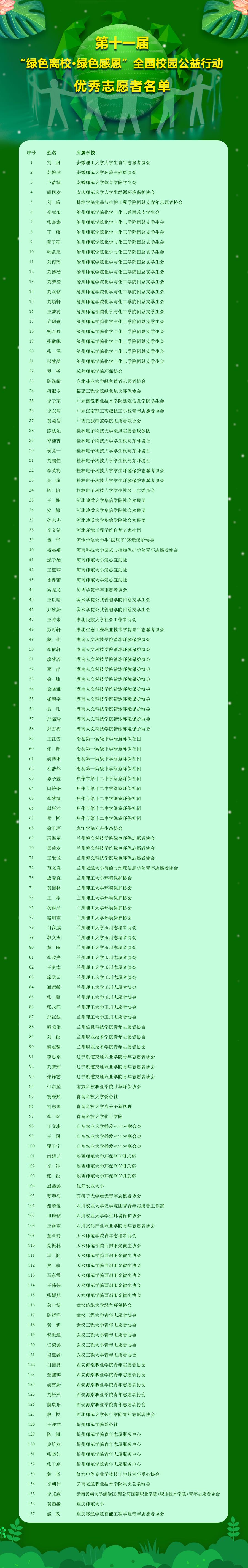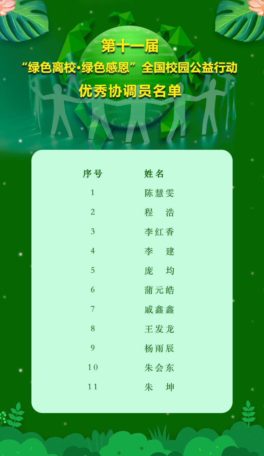 9月1日,由中国环境报社、中国环境网、物物福公益联合发起主办,中国好公益平台、中国青年网发现频道、益起绿动公益平台特别支持的第十一届“绿色离校·绿色感恩”全国校园公益行动评选活动圆满落下帷幕。