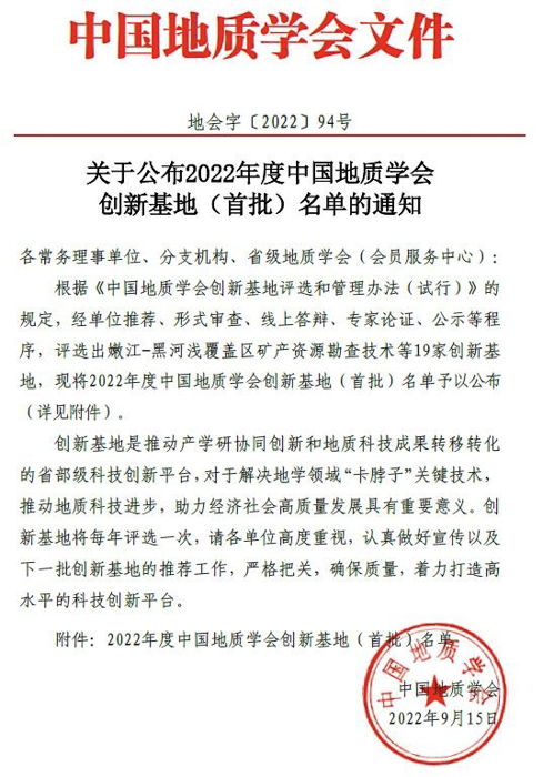 近日,中国地质学会公布2022年度中国地质学会创新基地(首批)名单,全国共有19所创新基地入选。由安徽理工大学牵头申报的“矿山精细勘探与智能监测技术创新基地”成功获批。