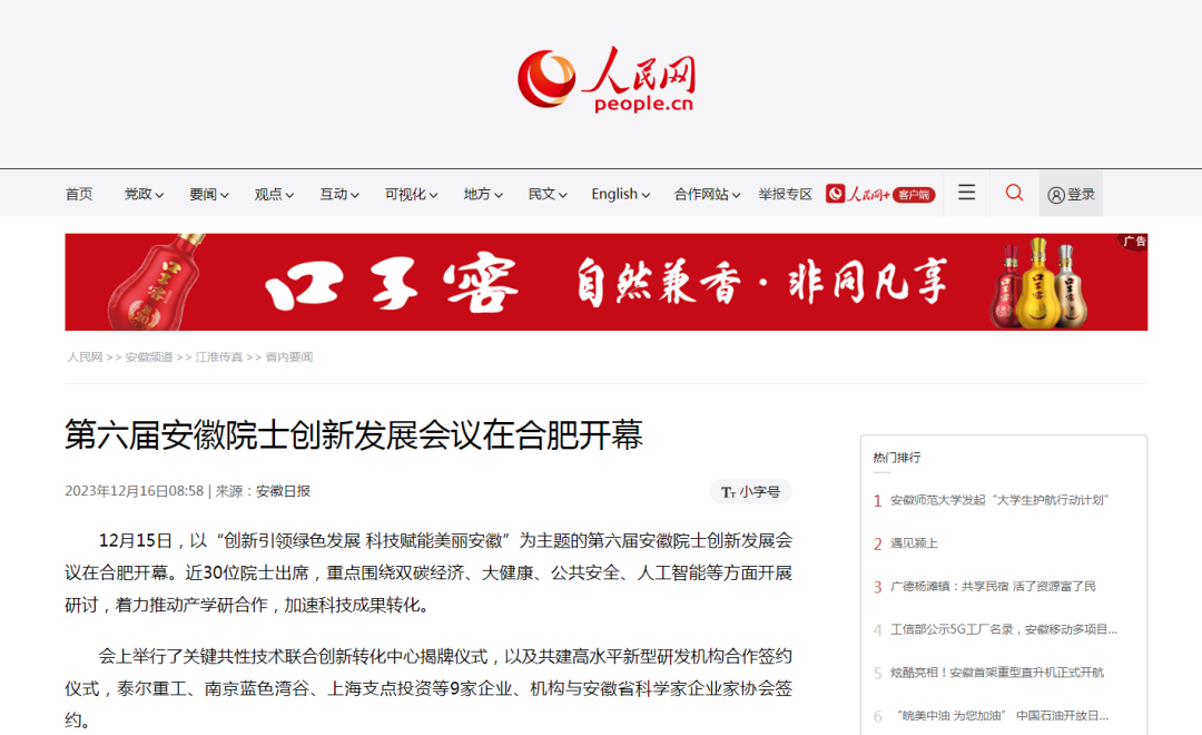 中国工程院院士彭寿围绕先进玻璃材料作主旨报告。中国工程院院士姜涛、中国工程院外籍院士张久俊分别就“双碳”目标下我国钢铁生产转型升级的思考、能源存储和转换中前沿热点电池研发进展作主旨报告。会议期间还举行了“2022年度安徽创新企业100强”颁奖仪式、院士专家企业行、科普行等活动。