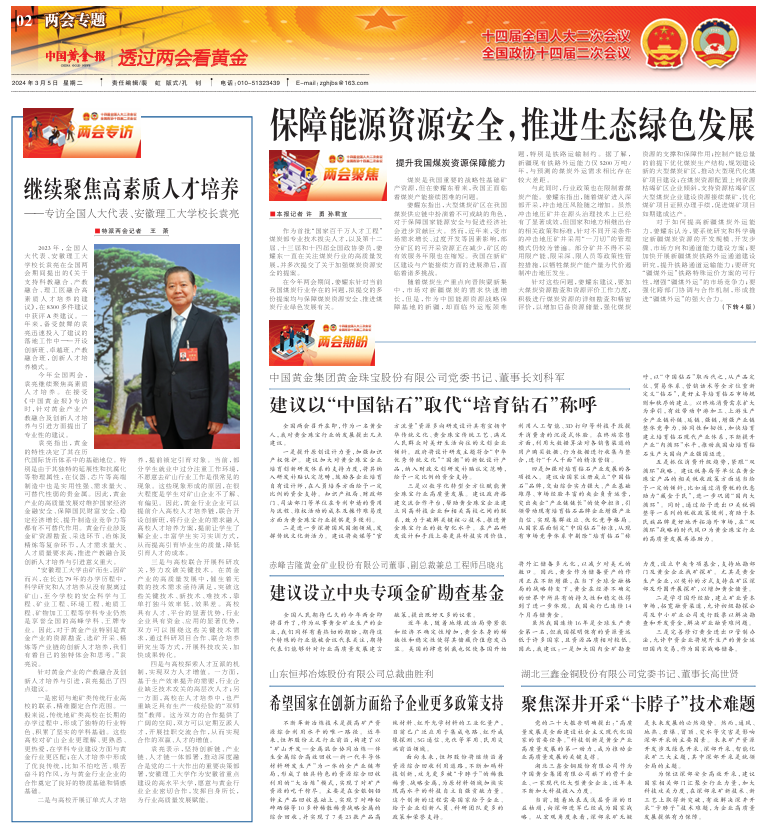 今年全国两会,袁亮继续聚焦高素质人才培养。在接受《中国黄金报》专访时,针对黄金产业产教融合及创新人才培养与引进方面提出了专业性的建议。