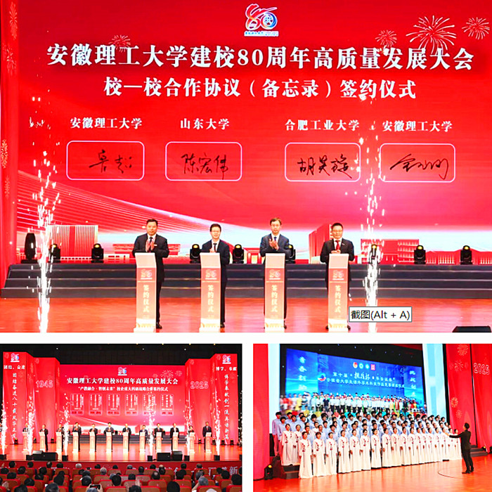 大会现场,安徽理工大学与山东大学、合肥工业大学签订了校际合作协议,与淮河能源控股集团、淮北矿业集团等6家企业签订总额3.4亿元重大科技创新合作项目协议。