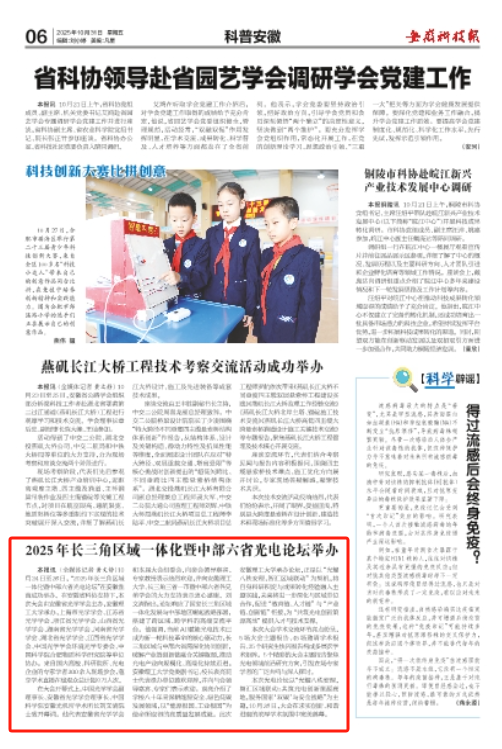 10月24日至26日,“2025年长三角区域一体化暨中部六省光电论坛”在安徽淮南成功举办。在安徽省科协支持下,本次大会由安徽省光学学会主办,安徽理工大学承办,上海市光学学会、江苏省光学学会、浙江省光学学会、山西省光学学会、湖南省光学学会、河南省光学学会、湖北省光学学会、江西省光学学会、中国光学学会环境光学专委会、中国科学院合肥物质科学研究院等单位协办。来自国内高校、科研院所、光电企业的专家学者200余人现场参会,蔻享学术直播在线观众总计超8万人次。