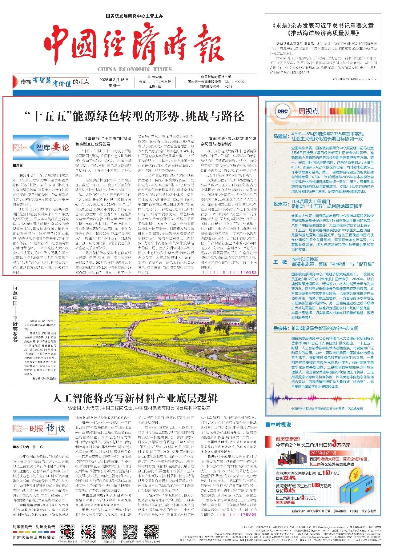 3月13日公布的《中华人民共和国国民经济和社会发展第十五个五年规划纲要》提出,深入实施能源安全新战略,加快构建清洁低碳安全高效的新型能源体系,建设能源强国。推进非化石能源安全可靠有序替代化石能源,坚持风光水核等多能并举,实施非化石能源十年倍增行动。推动煤炭和石油消费达峰。十四届全国人大四次会议表决通过的《中华人民共和国生态环境法典》是继民法典后我国第二部以“法典”命名的法律,标志着绿色转型正从政策驱动迈向法治引领的新阶段。