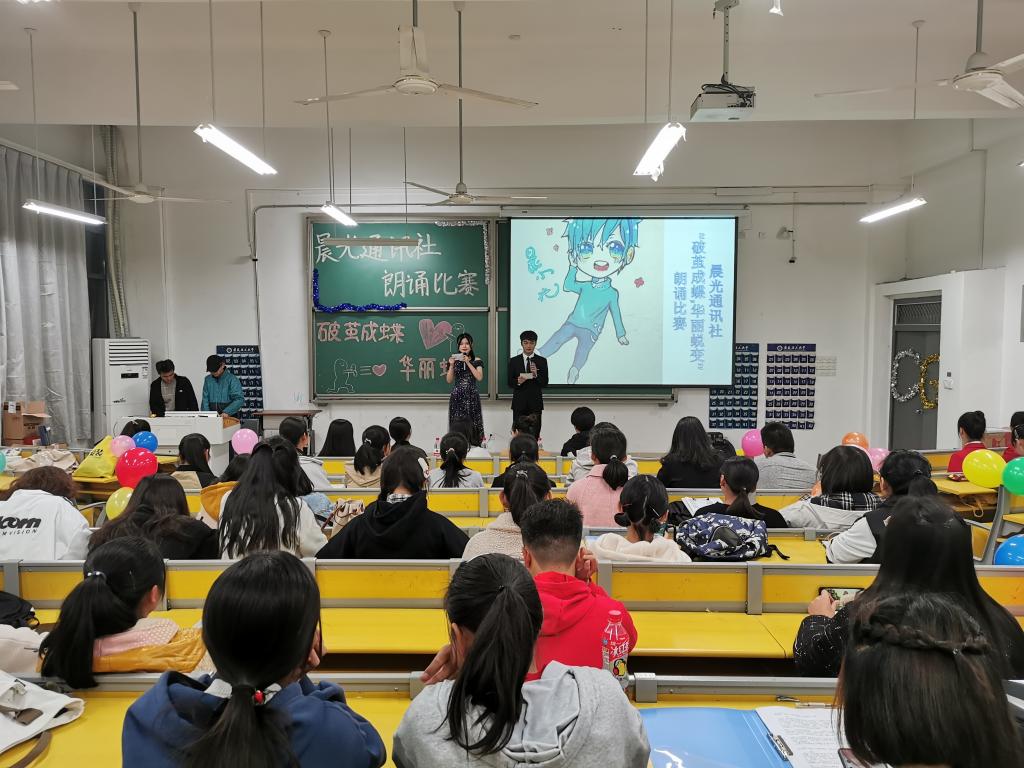 11月23日晚18:30,经济与管理学院于明理南104教室举办“破茧成蝶,华丽蜕变”朗诵比赛,来自学院2019级各班的24支队伍参赛。