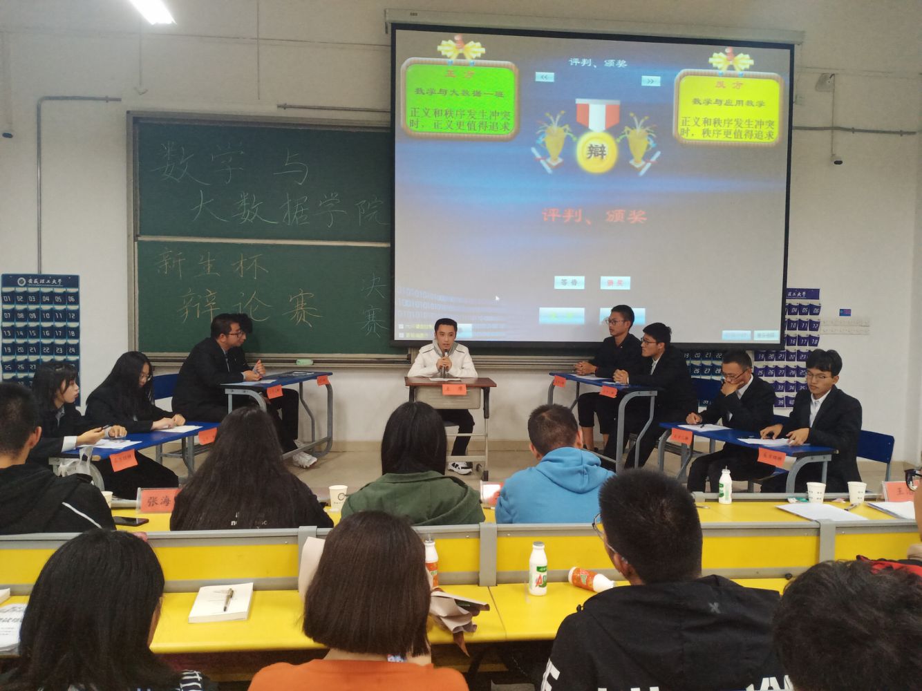 11月1日,数大学院“新生杯”辩论赛决赛在明理南楼112拉开帷幕。经过前几轮激烈的角逐,数大19-1班、应数19-1、信计19-2班和应统19-1班4支队伍晋级决赛。