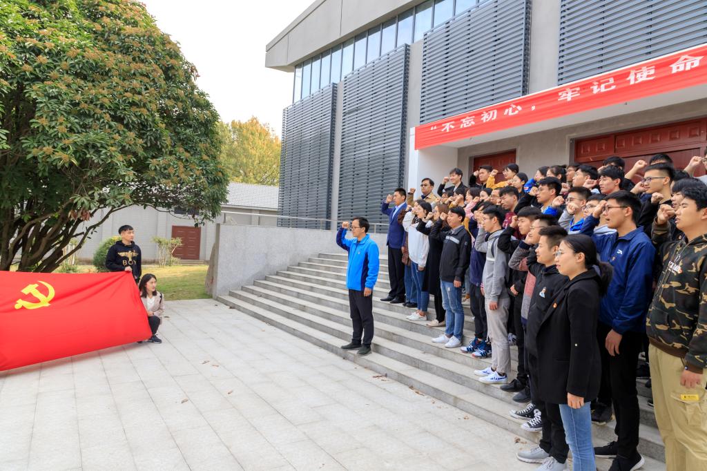 活动中,党员们面对庄严的党旗,重温了入党誓词。