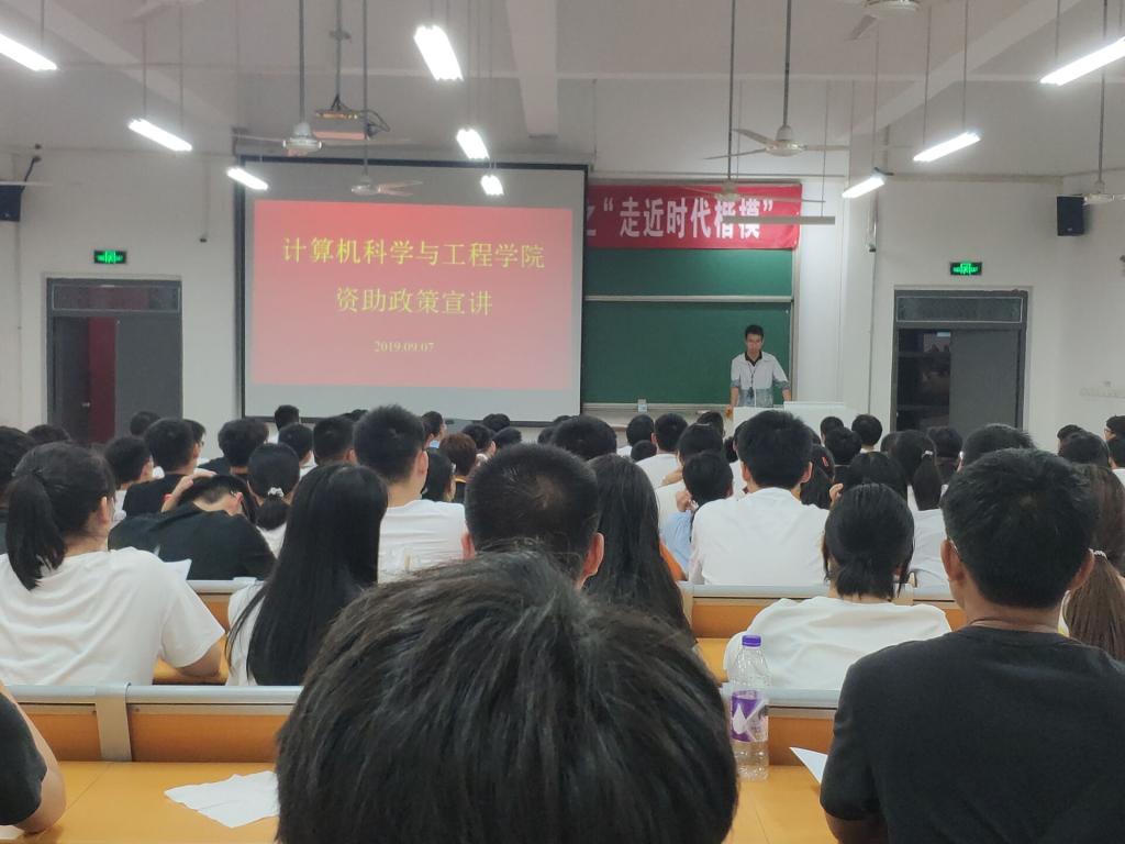 为深入推进资助育人,扎实做好新学年学院的学生资助工作,9月7日晚,计算机学院资助负责人在天工101、201、202等教室开展新学年新生资助政策专场宣讲会。2019级471名全体新生聆听了宣讲会。