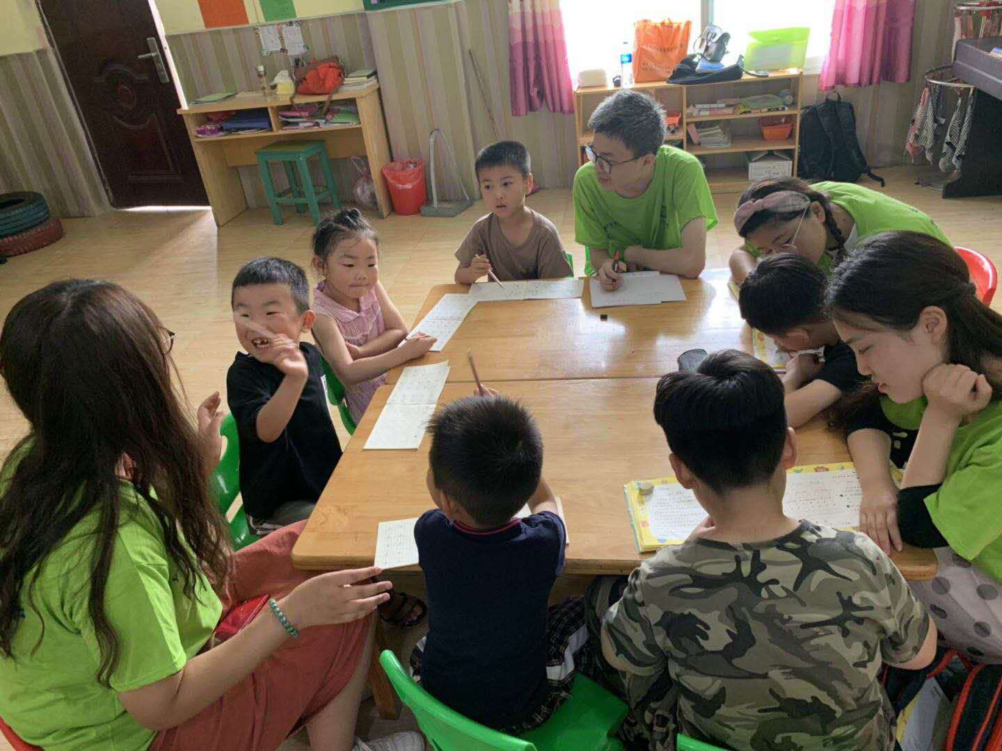 志愿者集中辅导作业进行亲情陪护