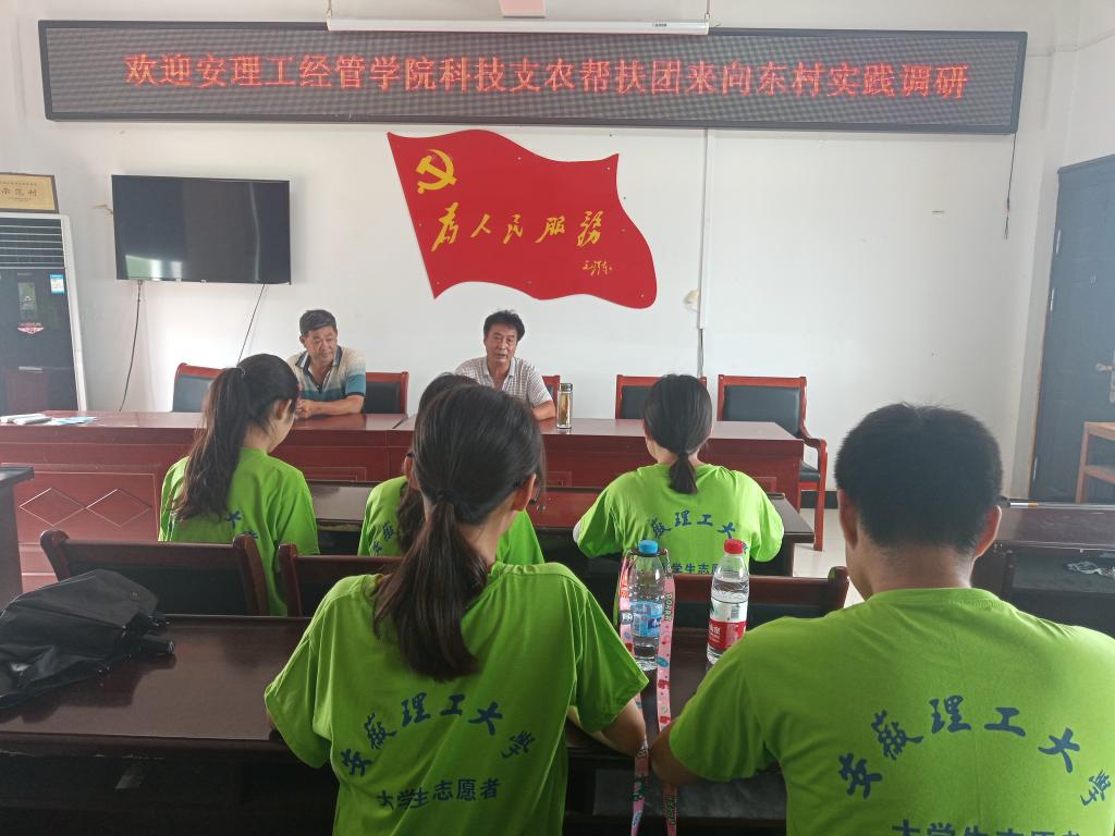 7月11日,经管学院帮扶团来到长丰县向东村开展扶贫现状调研。在向东村村委会会议室里,帮扶团一行与向东村村总支委员张继新及村委会成员举行了座谈会。座谈会上,张继新首先对帮扶团的到来表示热烈欢迎,然后详细介绍了向东村的发展历史及向东村发展现状,同时对帮扶团成员提出的问题一一给予了细致解答,使得帮扶团对向东村的整体情况有了一个细致且全面的了解。最终,座谈会确定了此次科技支农实践活动的行程安排与调研对象,为后续工作的展开奠定了基础。