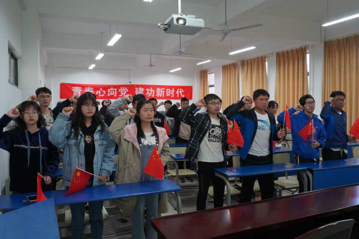 所有老团员为新团员佩戴共青团团徽,新老团员重温入团誓词,大家左手持五星红旗,右手高举,宣誓身为一名共青团员所拥有的决心。大家通过观看视频回顾了五四运动100年来的历史过往,纷纷表示要珍惜现在来之不易的幸福生活,秉承前辈优良传统,努力奋斗,争做担任民族复兴大任的时代新人。最后,活动在全体成员齐唱团歌中落下帷幕。