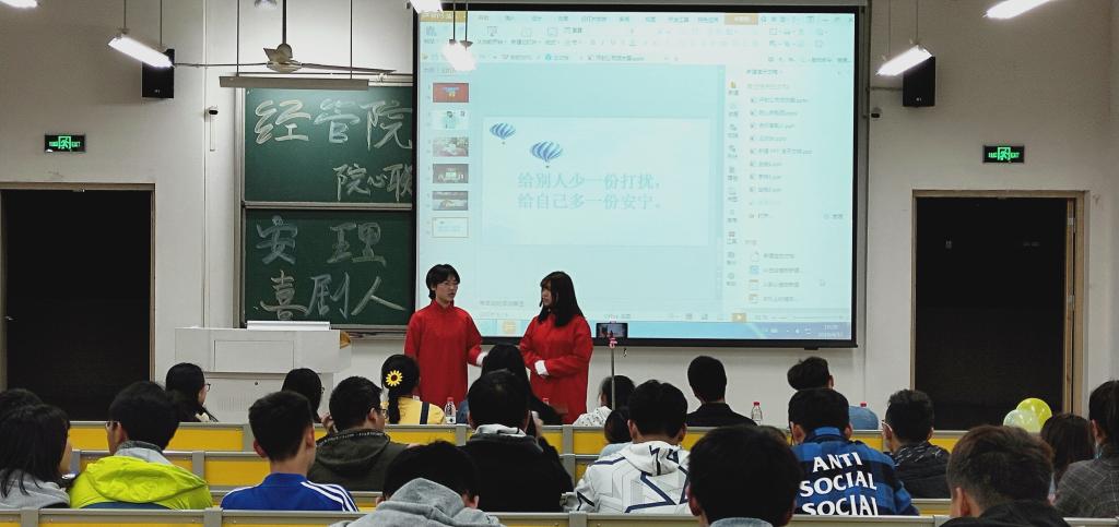 4月13日晚,经济与管理学院于明理楼204教室举办“安理喜剧人”大赛。来自学院2018级各班的11支队伍参加比赛。