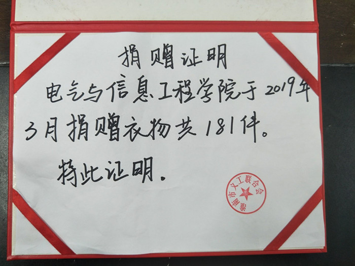 为传承雷锋精神,弘扬时代新风,作为学雷锋活动月的主题活动之一,电气与信息工程学院团委、学生会举办捐衣献爱心活动。3月20日,淮南市义工联合会专程来校接收爱心衣物,与学院团委举行了爱心衣物交接仪式。