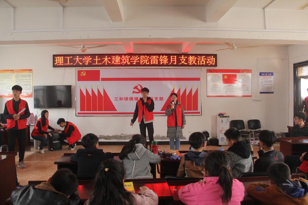 3月17日,土木建筑学院团委、学生会组织30余名志愿者前往三和镇横塘村村委会开展为期一天的义务支教活动。支教受益学生共40余名。