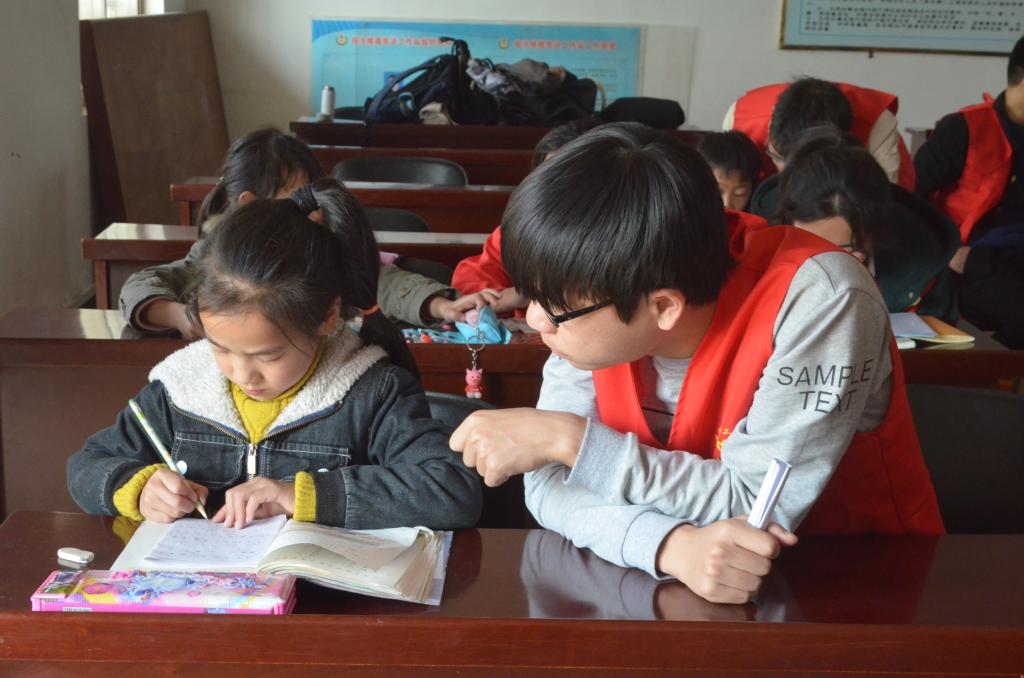 此次支教活动分为知识教学和素质拓展两个部分。教学部分主要以作业辅导为主,课外知识拓展为辅。早上,志愿者们还未赶到,便有很多家长和孩子已在村委会门口等待着。由于当地青年人出门打工居多,留守儿童现象极其普遍。而抚养孩子的爷爷奶奶又不懂课本知识,当听到有大学生志愿者来村里支教,便纷纷将孩子送了过来。志愿者们当然不负家长们的期望,细心地教着孩子们每一个知识点,帮他们解决学业上遇到的难题。