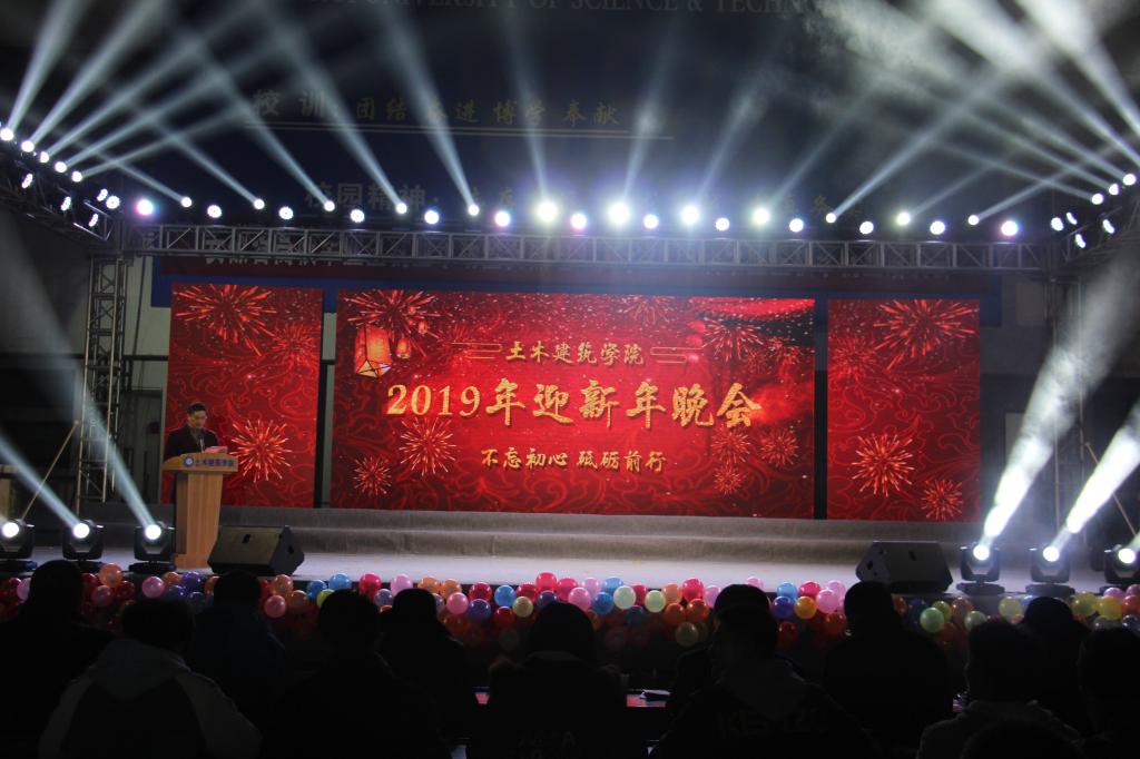 1月6日晚,土木建筑学院在厚德馆举办了2019年迎新年晚会。相关职能部门领导、学院党政领导和学院师生800余人共同观看了晚会。