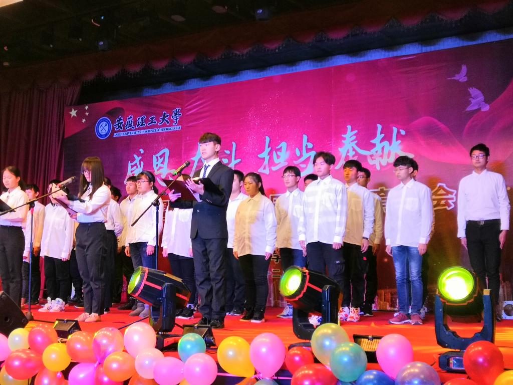为了发挥榜样引领作用,激励同学们学习先进典型,晚会中穿插了对学院优秀学生的访谈环节,2015级勘查技术与工程专业取得保送本校研究生资格的邱实讲述了自身的励志故事,感谢母校老师的培养,并寄语学弟学妹们要认真学习专业知识,珍惜大学生活。真挚的话语激励着台下的学弟学妹们,榜样的力量在晚会中得到了传递和升华。