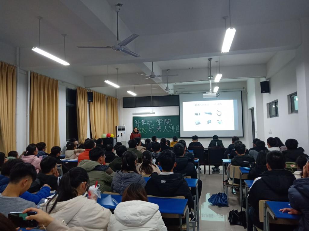 为进一步加强学生对智能机器人开发与应用的认识,了解计算机相关专业的发展前景,12月10日晚,计算机学院刘文娟老师在求本楼B401为计算机学院的学生作了题为《ROS机器人认知与体验》的讲座。