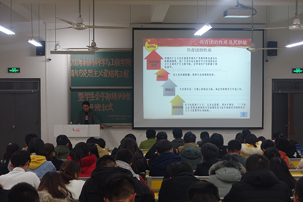 为深入学习习近平新时代中国特色社会主义思想和党的十九大精神,12月5日晚,材料科学与工程学院在明理202教室举办2018年青年马克思主义者培养工程暨学生干部培训班开班仪式。仪式由学院团委书记朱梁主持。学院学生会全体成员和2018级各班级干部共127人参加了活动。