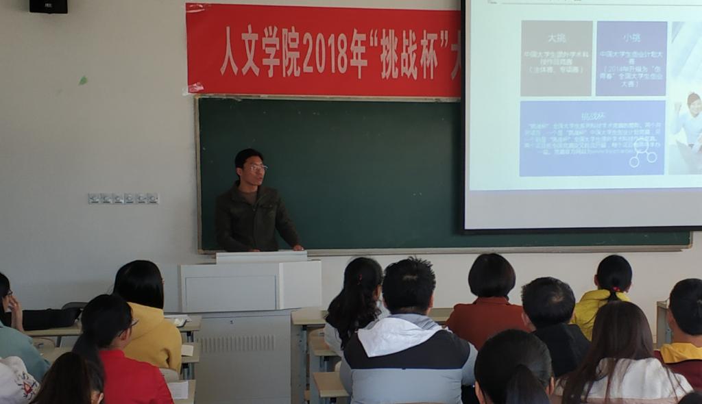 11月9日,人文社会科学学院在崇智楼333教室召开2018年“挑战杯”大学生课外学术科技作品竞赛宣讲会,邀请校团委唐克老师担任主讲。学院各系主任、参加“挑战杯”竞赛的学生团队及有意参加竞赛的学生团队共计70余人参会。