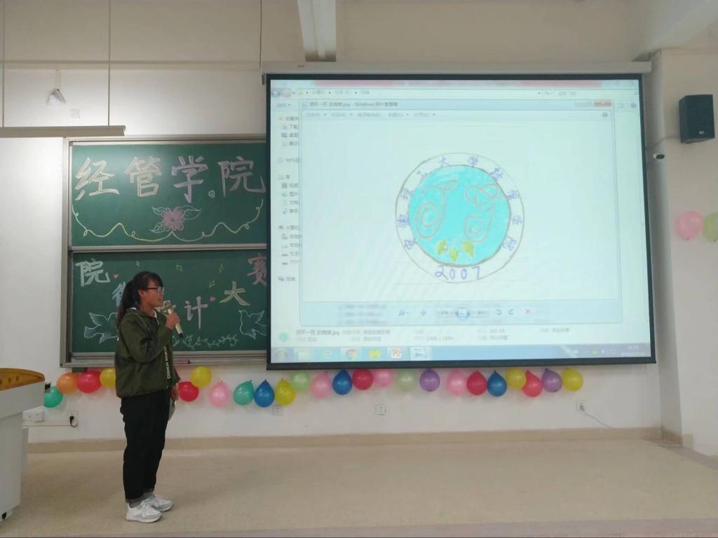 参赛选手依次讲解作品的设计理念,并结合经管院学科专业特色、学生培养目标以及学院发展的历史文化内涵等多个角度对作品进行了阐述。选手们的作品构思精巧,创意新颖,从不同角度展现出学院学子的风采。经过激烈的角逐,来自电商一班的胡万生同学摘得了比赛的桂冠。