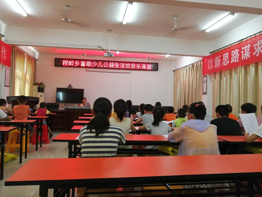 畅谈过后,石站长带领团队参观程岭文化建设:书香茶馆、文化长廊以及文化广场。最后,石站长带领团队成员进入暑期留守儿童的音乐课堂,在课堂上石站长循循善诱,用贴近孩子的口吻去引导孩子们歌要大声唱出来,想法要大胆表达出来。