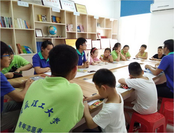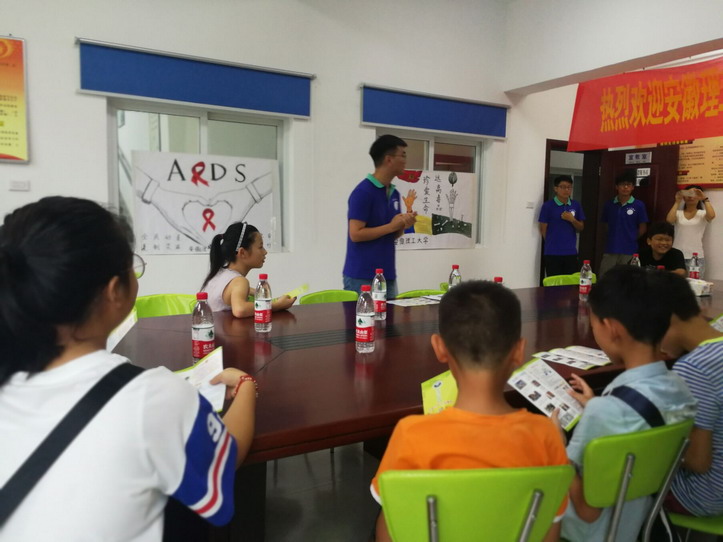 校级重点社会实践团队“大手拉小手,爱心满校园”教育关爱服务团的大学生志愿者们在社区活动室和社区近20名青少年举行了简单的见面会,通过开设防溺水知识宣讲课程,告诉青少年如何在游泳时注意自身安全、如何在遇到危险时进行自救和他救。志愿者们还为青少年们讲授了精心准备的英语、日语课程,为他们辅导暑期作业,教给了他们一些读书经验和学习方法,帮助他们解决一些学习和成长中的困惑。志愿者带领青少年们开展了一系列精心策划的小游戏,通过知识问答的方式向孩子们赠送了精心准备的玩具、文具、图书、手表等小礼物,鼓励青少年积极参与互动,提升自信心。