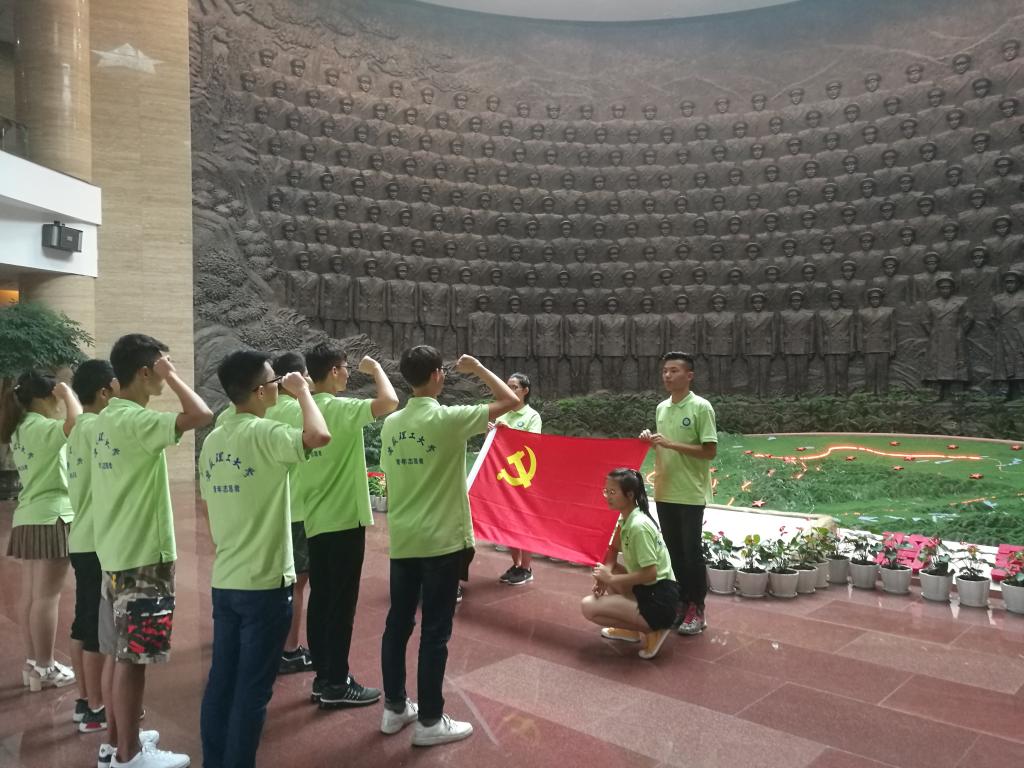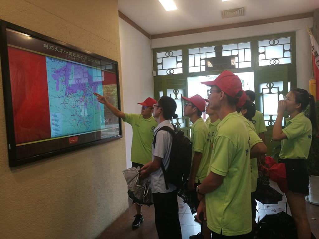 在鄂豫皖苏区首府烈士陵园里,通过一幅幅发黄的照片,一段段难忘的记忆,一句句铿锵的誓言,真实反映了革命老区共产党人在血雨腥风年代为寻求民族独立与国家解放所做的艰苦卓越的斗争。在鄂豫皖苏区将帅馆中,志愿者们瞻仰了在鄂豫皖苏区工作和战斗过的开国将帅的生平事迹、革命文物和历史照片,志愿者中的党员站在349位开国将帅塑像前,面对鲜红的党旗重温了入党誓词。