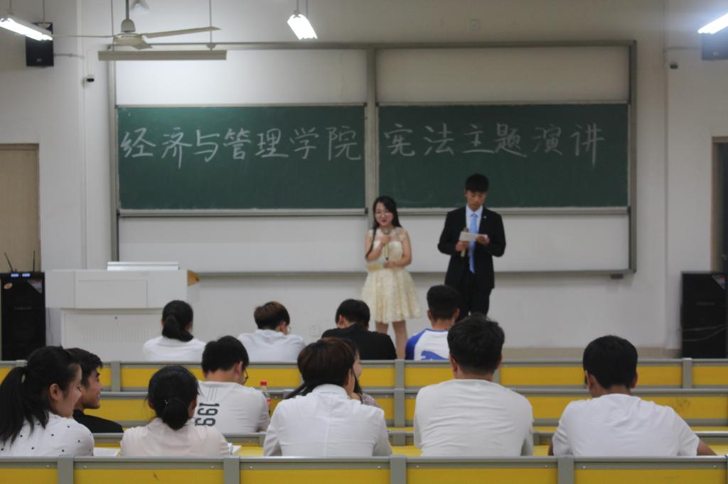 6月9日晚,经济与管理学院于明理205教室先后举办“学宪法讲宪法”演讲比赛和宪法知识竞赛。来自2017级各班学生代表参加了比赛。