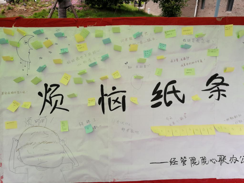 5月25日,经济与管理学院烦恼纸条活动于明理203圆满落幕,2017级全体学生积极参与。
