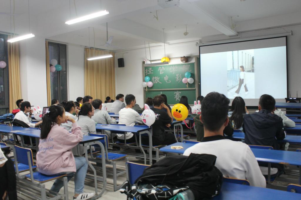 5月22日晚,经济与管理学院在崇信楼东104教室举办第十一届微电影大赛。来自学院2017级各班参赛队伍参加了比赛。