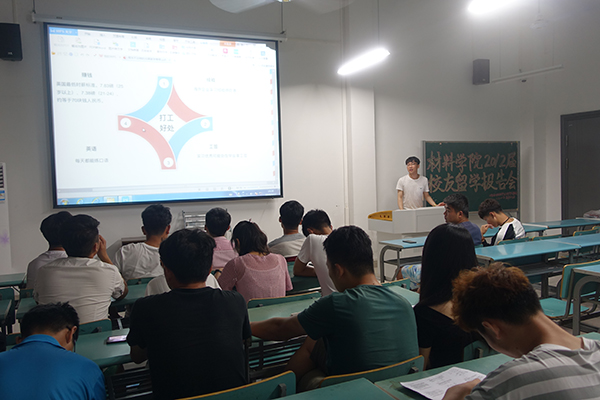 5月17日晚,材料科学与工程学院在崇义楼B111教室举行了留学校友经验交流会。留学英国的2016届无机非金属材料工程专业王兆华校友与学弟学妹分享交流经验。学院部分学生代表参加了交流会。