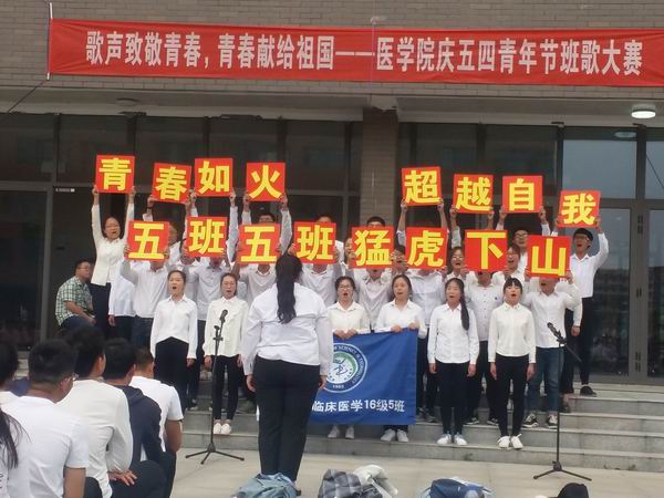 为纪念“五四运动”99周年,大力弘扬“五四”精神,唱响青春爱国主旋律,展现新时代新青年风采,5月4日下午,医学院在崇仁楼南门广场举办庆祝“五四”班歌大赛。医学院2016级13个班级全部参加了比赛。