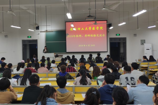 4月24日晚,医学院在明理301教室举办2018年考研经验交流会,邀请2013级、2014级8名考取研究生的毕业生进行主讲。2014级、2015级近300名同学聆听了报告会。