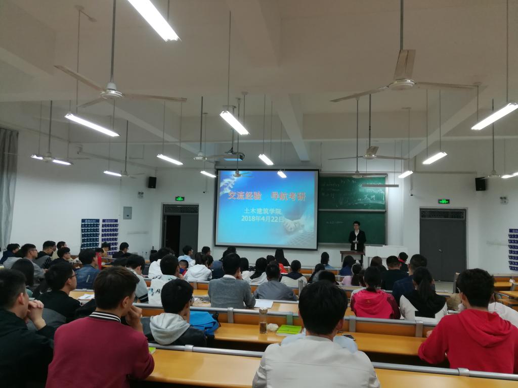 4月22日晚,土木建筑学院2014级学生考研经验交流会在天工楼101教室举行。此次交流会邀请了7名优秀考研学子为与会的学弟学妹传授考研经验。学院2015级有意愿考研学生参加了交流会。
